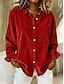 חג המולד בגדי ריקוד נשים קטיפה אלגנטי מִתגַנדֵר חולצה צבע אחיד אחיד אלגנטית וינטאג' טרופי שרוול ארוך צווארון חולצה חולצות רגילות יומי חגים ליציאה כפתורים אודם תלתן אביב סתיו חורף