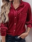 בגדי ריקוד נשים חולצה קטיפה אלגנטי מִתגַנדֵר צבע אחיד אחיד אלגנטית נשים מסוגנן שרוול ארוך צווארון חולצה חולצות ארוכות עבודה יומי חגים טלאים כיס כפתורים ורוד מסמיק ירוק צבא חום בהיר סגול סתיו חורף