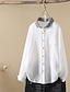 חולצת נשים כפתורים עם צווארון טוניק שרוול ארוך צבע אחיד קז'ואל טופס רגיל לעבודה יומיומית עם הדפס שחור לבן אדום יין כחול תכלת אביב סתיו