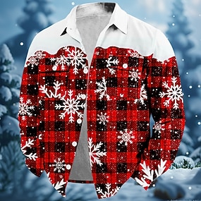 חג המולד בגדי ריקוד גברים משובץ פתית שלג חולצה חולצת קורדרוי מעיל חולצה שרוול ארוך אופנה קז'ואל רחוב לבוש ליום סתיו חורף צווארון מתקפל חולצות עם צווארון לַחְצָן הדפסת תלת מימד 2 כיסים 1 pc