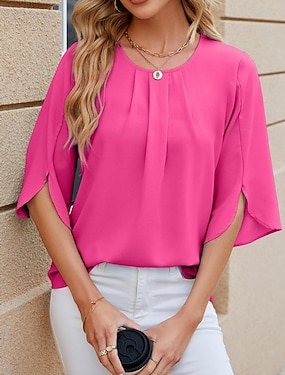 בגדי ריקוד נשים חולצות שמלות אלגנטית שרוולים קצרים צווארון עגול קצר חולצות רגילות ורוד מסמיק חאקי קיץ אביב