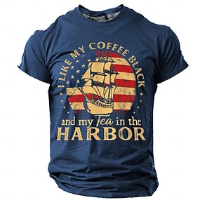 בגדי ריקוד גברים דגל ארה"ב האמריקני סִיסמָה חולצה קצרה שרוולים קצרים חולצה קצרה הדפסת תלת מימד צווארון עגול קצר חולצה רטרו\וינטאג' יום יומי סגנון רחוב ספורט חוץ חגים ליציאה שחור פול תלתן אביב קיץ