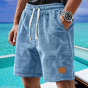 בגדי ריקוד גברים שורט וופל שורטים מכנס קיץ קצר מכנסיים קצרים מזדמנים כיס שרוך אלסטית מותניים אחיד קומפורט נושם קצר בָּחוּץ חופשה ספורט יום יומי שחור לבן מיקרו-אלסטי