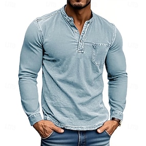 בגדי ריקוד גברים חולצת הנלי טי שירטס טופ טי חולצה ארוכת שרוולים שרוול ארוך הנלי סתיו חורף רטרו אופנתי מעצב נוֹסטָלגִי אופנה וינטאג' חופשה רחוב ליציאה שחור ורוד מסמיק כחול נייבי חולצה עליונה לגברים