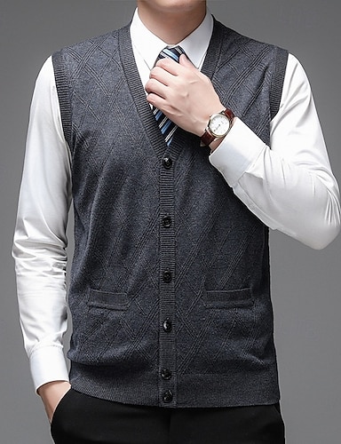 בגדי ריקוד גברים אפוד סוודר סוודר שמלה סוודר צמר מצולע לִסְרוֹג סרוג כפתור למטה טלאים צווארון V מודרני עכשווי בריטי לבוש יומיומי ליציאה ביגוד בלי שרוולים קיץ & אביב נייבי כהה אפור כהה M L XL