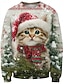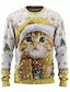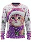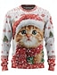 חג המולד נשים סווטשירט עם סווטשירט גרפי חיה חתול אקטיבי חמוד קז'ואל שרוולים ארוכים צווארון עגול רגיל חולצות רחוב קז'ואל חג הדפס צהוב אדום סגול אביב סתיו חורף