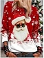 חג המולד לנשים סווטשירט בסוודרים גרפי סנטה קלאוס פתית שלג פעיל חמוד קז'ואל שרוולים ארוכים צווארון עגול רגיל חולצות בית עבודה רחוב הדפס יין אדום לבן אביב סתיו חורף