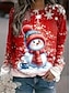 בגדי ריקוד נשים סווטשירט סוודר קפוצ'ונים גראפי איש שלג פתית שלג אופנתי יום יומי שרוול ארוך צווארון עגול קצר צווארון עגול חולצות רגילות רחוב לבוש ליום קזו'אל דפוס שחור אודם אביב סתיו חורף