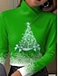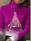 חג המולד בגדי ריקוד נשים חולצה קצרה גראפי עץ חג המולד פתית שלג אלגנטית וינטאג' מסוגנן שרוול ארוך צווארון גבוה חולצות רגילות יומי דפוס פול אודם סגול תלתן אביב סתיו חורף