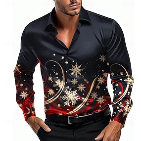 חג המולד בגדי ריקוד גברים פתית שלג חולצה שמלת שמלה חולצה עם כפתורים שרוול ארוך יום יומי אופנה קז'ואל חופשה בגדי ערב למסיבה לבוש ליום קיץ אביב סתיו חולצות עם צווארון הדפסת תלת מימד שחור