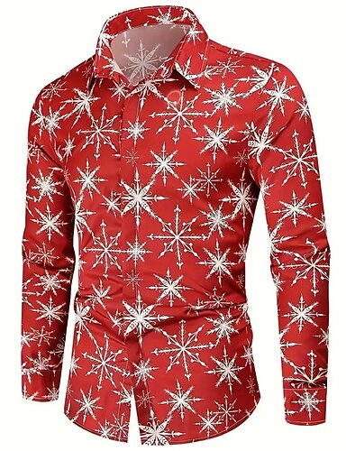 חג המולד פתית שלג חולצת גברים מזדמנים ללבוש יומיומי יוצא הסתיו & חורף סבבה עם שרוול ארוך אדום כהה s, m, l חולצת בד מתיחה 4 כיוונים