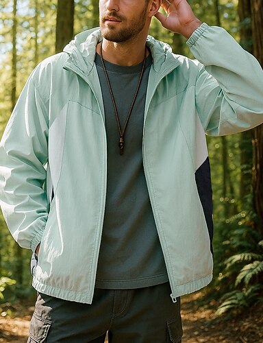 בגדי ריקוד גברים מעיל ג'קט לטיולי הליכה בָּחוּץ קולור בלוק עמיד עמיד במים קפוצ'ון מעיל מעיל רוח מחנאות / צעידות / טיולי מערות לטייל שחור ירוק צבא כחול חאקי