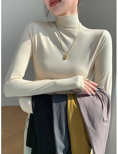 בגדי ריקוד נשים חולצה צבע אחיד אלגנטית מסוגנן בסיסי שרוול ארוך סקופ צוואר חולצות רגילות יומי שחור לבן ירוק צבא תלתן אפור כהה אביב סתיו חורף