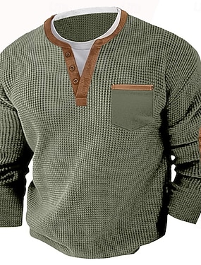 בגדי ריקוד גברים טי וופל חולצת הנלי וופל שרוול ארוך עומד קיץ & אביב כל העונות צבע אחיד אופנתי בסיסי יום יומי כיסים שתי חתיכות מזויפות רחוב קזו'אל ספורט שחור כחול נייבי ירוק צבאי חולצה עליונה לגברים
