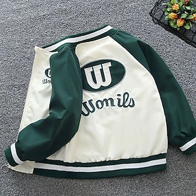ילדים בנים מעילי בייסבול הלבשה עליונה גראפי אותיות שרוול ארוך מעיל בית הספר מגניב יומי שחור תלתן אביב סתיו 7-13 שנים