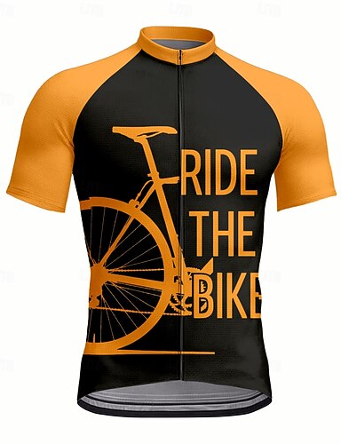 בגדי ריקוד גברים חולצת ג'רסי לרכיבה גראפי קולור בלוק מכתב ומספר שרוולים קצרים אופנייים טי טי צמרות עם 3 כיסים אחוריים עמידות UV ייבוש מהיר רוכסן קדמי רצועות מחזירי אור ספורט כתום ביגוד