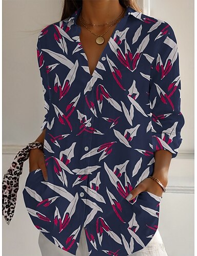 בגדי ריקוד נשים חולצה פרחוני פעיל יומי מסוגנן שרוול ארוך צווארון חולצה חולצות רגילות יומי חגים כפתורים דפוס לבן ורוד מסמיק כחול נייבי פול תלתן אביב סתיו