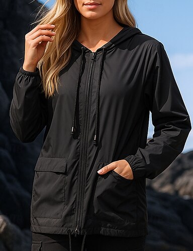 בגדי ריקוד נשים ג'קט לטיולי הליכה ז'קט ספורט חיצוני עמיד למים עמיד ייבוש מהיר קל משקל בגדי טיולים אביב סתיו ג'קט טניס גולף ריצה צבע אחיד שחור לבן קפה