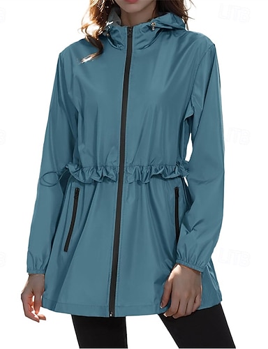 בגדי ריקוד נשים ג'קט לטיולי הליכה ג'קט גשם מעיל גשם חיצוני עמיד למים עמיד בגדי טיולים אביב סתיו צמרות כותנה מחנאות / צעידות / טיולי מערות ריצה צבע אחיד שחור לבן נייבי כהה