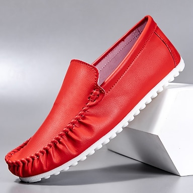 נעלי לופז אדומות מעור מלאכותי לגברים - נעלי נהיגה קלות משקל וקז'ואליות ללבישה יומיומית ולנסיעות