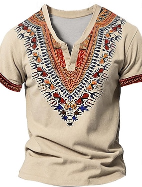 בגדי ריקוד גברים דפוס אפריקאי חולצה קצרה חולצת הנלי שרוולים קצרים הדפסת תלת מימד מעצב אתני קזו'אל יומי קיץ חאקי אפור צווארון V הנלי חולצת טריקו של הנלי