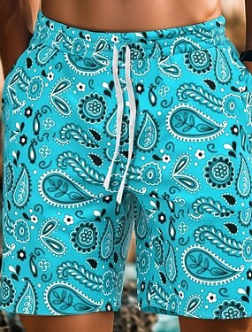 בגדי ריקוד גברים פייסלי מכנסי שחייה מכנסי שורט בגדי ים מכנסי גלישה מותן בינוני סגנון רחוב הוואי קזו'אל יומי חגים כיס שרוך אלסטית מותניים מְעַצֵב ביגוד