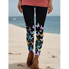 בגדי ריקוד נשים מכנסיים חותלות טייץ נעים חופשה בסיסי יום יומי באורך מלא מותניים גבוהים פרפר פרח אלסטית מותניים דפוס קומפורט נשימה נוח גמישות גבוהה חופשה רשמי רחוב ורוד מסמיק קיץ אביב גזרה צרה