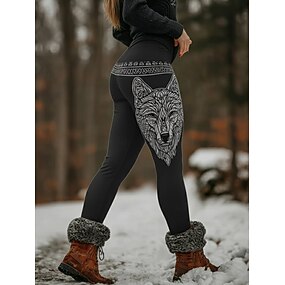 בגדי ריקוד נשים ויקינג חותלות טייץ נעים חופשה וינטאג' סגנון אתני באורך מלא מותניים גבוהים גראפי חיה מדפיס נוח סטרצ'י (נמתח) קזו'אל יומי בָּחוּץ שחור אביב סתיו חורף גזרה צרה