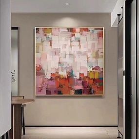 ציור שמן בעבודת יד על בד קיר קישוט אמנות מודרנית מופשטת בלוקים בצבע ורוד מרקם לעיצוב הבית מסגרת מתוחה לתלייה ציור/בד מגולגל (ללא מסגרת)