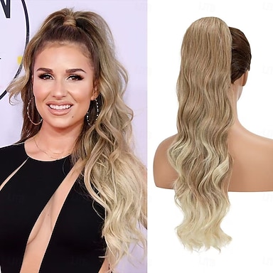תירס גלי קוקו ארוך שיער סינטטי על קליפ תוספות שיער אומבר זנב פוני חום שיער בלונדיני