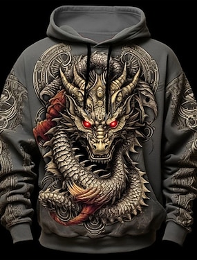 בגדי ריקוד גברים גראפי חיה דרקון קפוצ'ון קפוצ'ונים טרנינג יומי בסיסי שרוול ארוך עם קפוצ'ון חופשה ספורט חוץ חגים שחור צהוב דפוס כיס קדמי קיץ & אביב מְעַצֵב