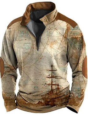 בגדי ריקוד גברים מפה זיפ פולו שרוול ארוך חולצות פולו ריצרץ וינטאג' בָּחוּץ יום יומי\קז'ואל לבוש רחוב 3D דפוס סתיו חורף סגול חום תלתן