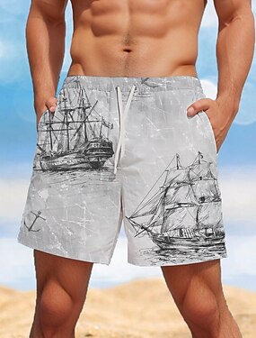 בגדי ריקוד גברים סירה סירת מפרש מכנסי שחייה מכנסי שורט בגדי ים מכנסי גלישה מותן בינוני אופנתי סגנון רחוב מעצב קזו'אל יומי חגים כיס שרוך אלסטית מותניים מְעַצֵב ביגוד