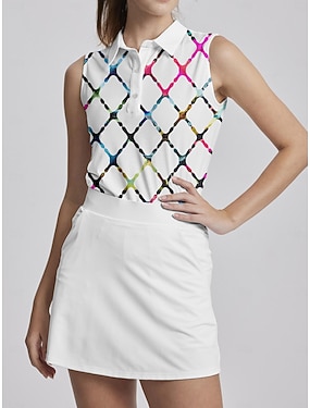בגדי ריקוד נשים חולצת POLO לבן ללא שרוולים הגנה מפני השמש צמרות משובץ נשים בגדי גולף בגדי תלבושות ללבוש ביגוד