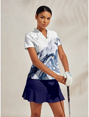 בגדי ריקוד נשים חולצת POLO בגדי גולף כחול אגם סגול כתום ללא שרוולים הגנה מפני השמש קל משקל חולצה קצרה צמרות פרחוני נשים בגדי גולף בגדי תלבושות ללבוש ביגוד