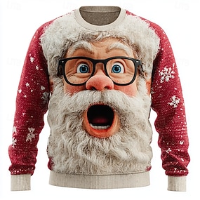 סוודר חג המולד המכוער בגדי ריקוד גברים סנטה קלאוס הדפסת תלת מימד פתית שלג סוודר סוודר סריגים צווארון צווארון יום יומי חופשה יומי פֶסטִיבָל Keep Warm שרוול ארוך סתיו חורף אדום -1 אדום -2 אדום -3