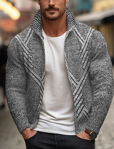 בגדי ריקוד גברים סוודר סוודר קרדיגן סוודר רוכסן ז'קט סוודר מצולע לִסְרוֹג חתוך סרוג גאומטרי עומד חימומים מודרני עכשווי לבוש יומיומי ליציאה ביגוד חורף כחול נייבי אפור כהה M L XL