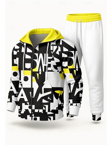 בגדי ריקוד גברים קפוצ'ון אימונית חליפת טרנינג 2 חלקים שרוך לרכוס גיאומטרי חליפות בגדים סתיו צהוב מקצוע חוץ נסיעות קל משקל אופנתי שרוול ארוך ספורט לבוש אקטיבי סטרצ'י (נמתח) רגיל