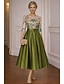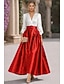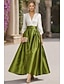 גזרת A באורך הקרסול שמלות קוקטייל אלגנטית שרוולים קצרים צווארון חולצה מסיבת חצר חתונה טפטה סאטן נמתח עם פרחים תלת-ממדיים פפיון(ים)