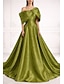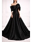 גזרת A עד הריצפה שמלות ערב שמלת נשף לבוש רשמי אלגנטית נוצץ עשוי משי שרוולים קצרים סירה מתחת לכתפיים חתונה רשמי כיס טפטה עם כיס