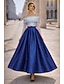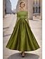 גזרת A באורך הקרסול שמלות קוקטייל אלגנטית שרוולים קצרים סירה רחב מסיבת חצר חתונה טפטה סאטן נמתח עם קפלים