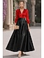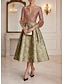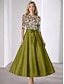 גזרת A באורך הקרסול שמלות קוקטייל שמלות מסיבה אלגנטית וינטאג' שרוול 4\3 צווארון V חתונה רשמי טפטה ג'אקרד עם פפיון(ים) קפלים