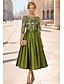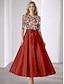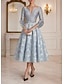 גזרת A באורך הקרסול השמלה המפלגה שמלת קוקטייל שמלת אורח לחתונה שמלות קוקטייל אלגנטית נוצץ שרוול 4\3 סירה רחב מסיבת חצר רשמי כיס טפטה נצנצים עם הדפס פרחוני פפיון(ים) נצנצים