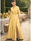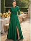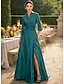 גזרת A עד הריצפה שמלת חולצה שמלת אורח לחתונה שמלה רשמית שמלה לאם הכלה שרוול 4\3 צווארון חולצה אלגנטית חתונה רשמי טפטה סאטן נמתח עם שסע