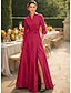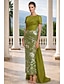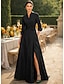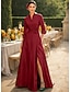 מעטפת עמוד עד הריצפה חרוזים רקומים שמלה רשמית שמלת אם הכלה שמלות ערב שמלת נשף עם חצאית עליונה לבוש רשמי אלגנטית בלוק צבע פיצול גבוה שרוולים קצרים סירה מתחת לכתפיים חתונה רשמי סאטן טפטה עם שסע