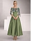 גזרת A באורך הקרסול שמלה רשמית שמלות קוקטייל אלגנטית שרוול 4\3 לב (סוויטהארט) חתונה רשמי תחרה טפטה עם חרוזים קפלים