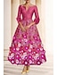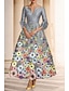 גזרת A באורך הקרסול שמלות קוקטייל שמלות מסיבה אלגנטית וינטאג' פרחוני שרוול 4\3 צווארון V מסיבת חצר חתונה כיס טפטה ג'אקרד גב בדוגמת דרפה עם הדפס פרחוני פפיון(ים) קפלים