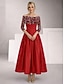גזרת A באורך הקרסול שמלות קוקטייל אלגנטית שרוול 4\3 סירה רחב מסיבת חצר חתונה טפטה נצנצים עם פפיון(ים) קפלים
