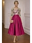 גזרת A באורך הקרסול שמלה ורודה שמלות קוקטייל שמלות מסיבה שמלות אורח כלה אלגנטית בלוק צבע שרוול ארוך צווארון V חתונה רשמי כיס טפטה סאטן נמתח גב בדוגמת דרפה עם פרח רקום פפיון(ים)