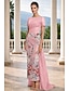 מעטפת עמוד שובל סוויפ בראש שמלות קוקטייל שמלת נשף עם חצאית עליונה אלגנטית נוצץ מדבקות עם נצנצים שרוולים קצרים צווארון V מסיבת ערב מסיבת חצר טפטה גב בדוגמת דרפה עם הדפס פרחוני נצנצים שסע